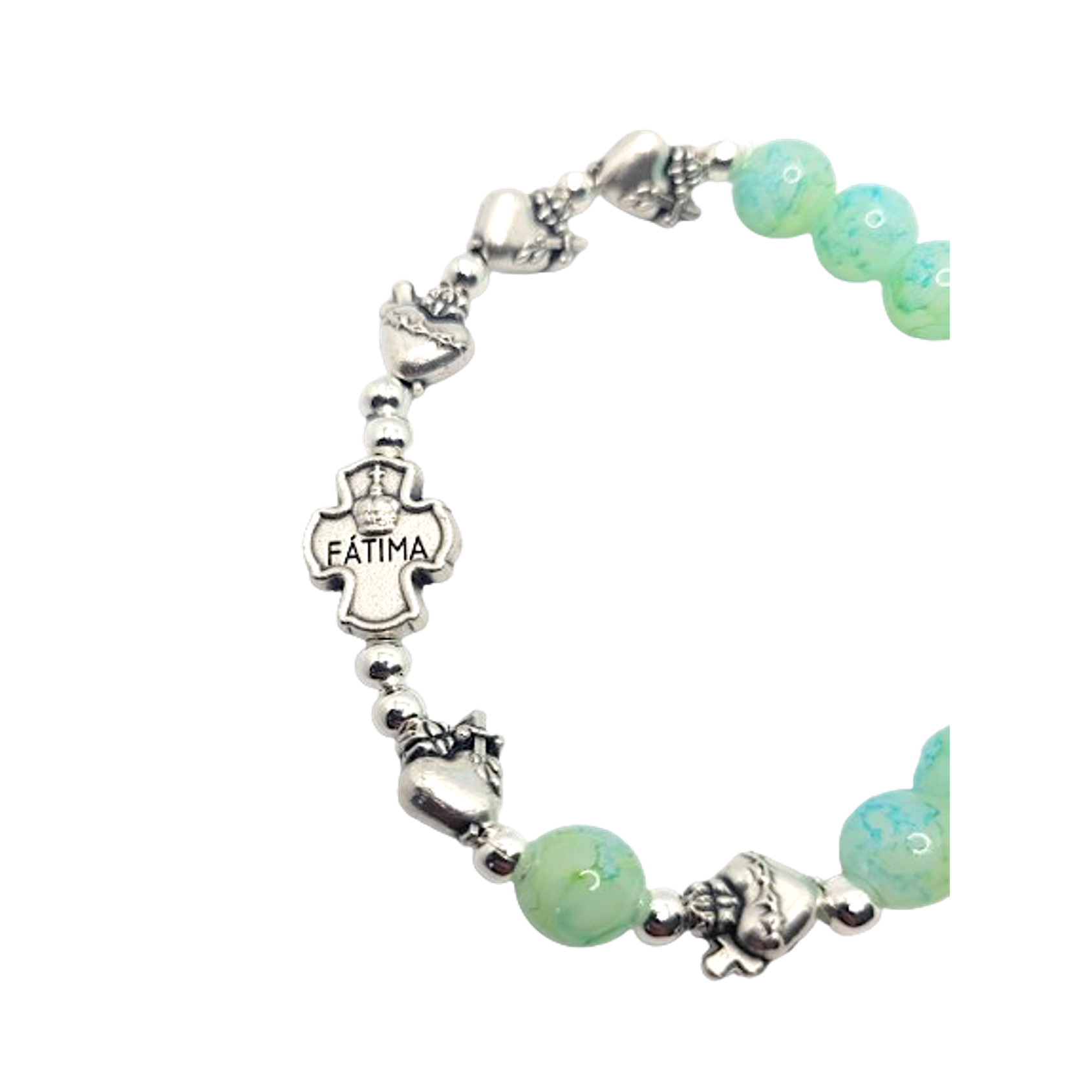 At the heart of this bracelet lies a cross medal, intricately engraved with the apparitions of Our Lady of Fatima on one side and the crown of the Virgin Mary on the other. Feel the divine guidance and maternal love of Our Lady as you wear this sacred symbol of faith.