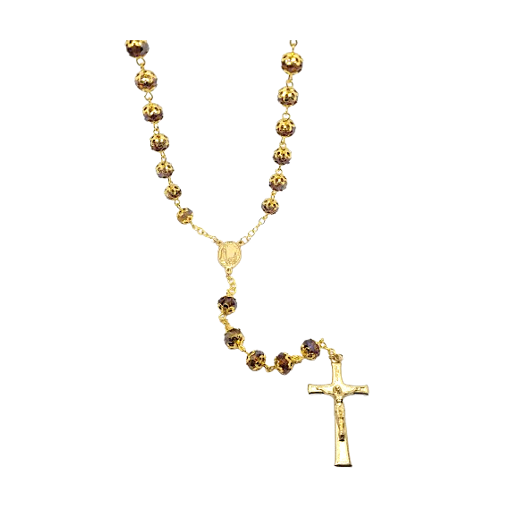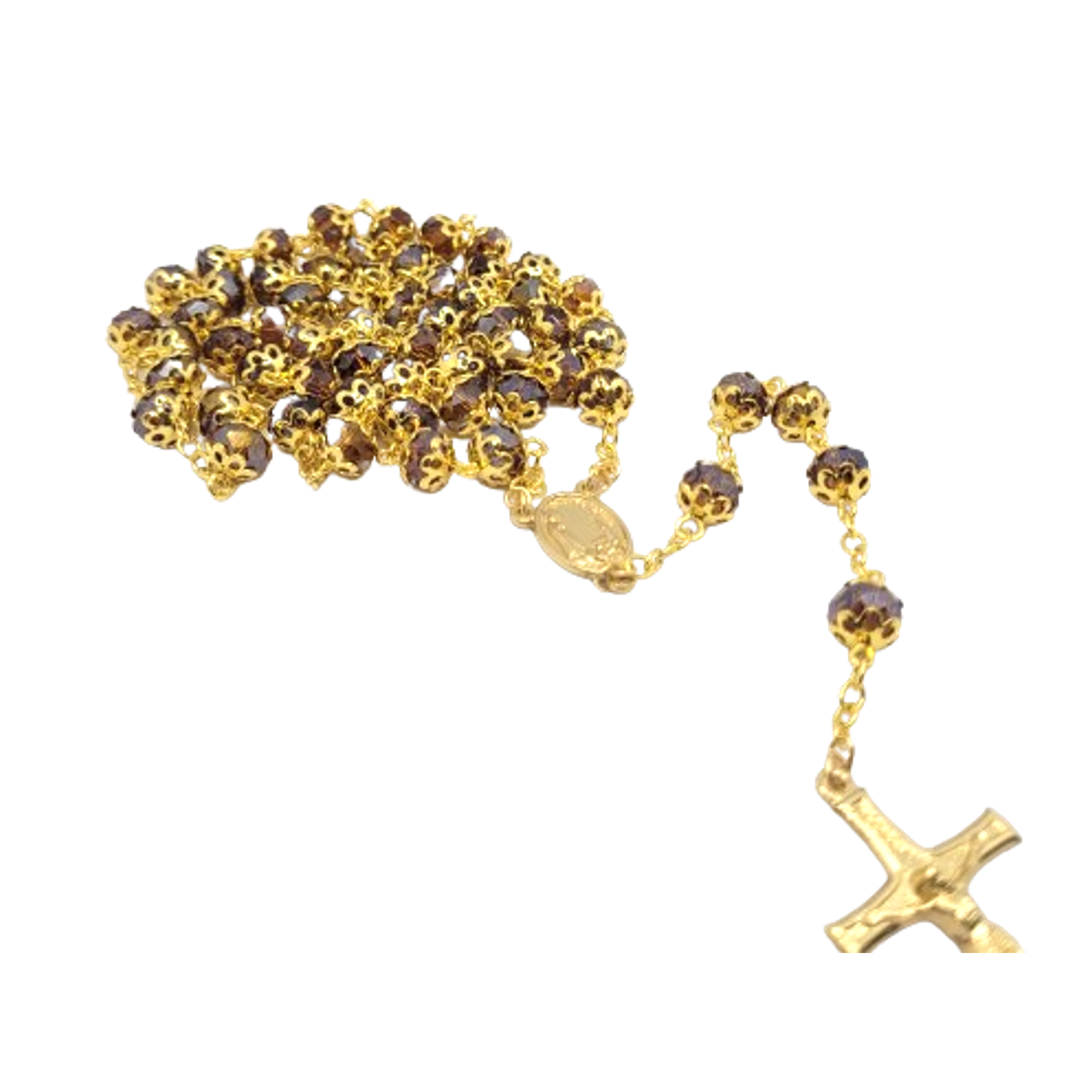 Our Crystal and Amber Rosary is crafted from crystal beads with warm amber colour. Each bead reflects the brilliance of divine light, infusing your spiritual practice with a sense of celestial beauty.
