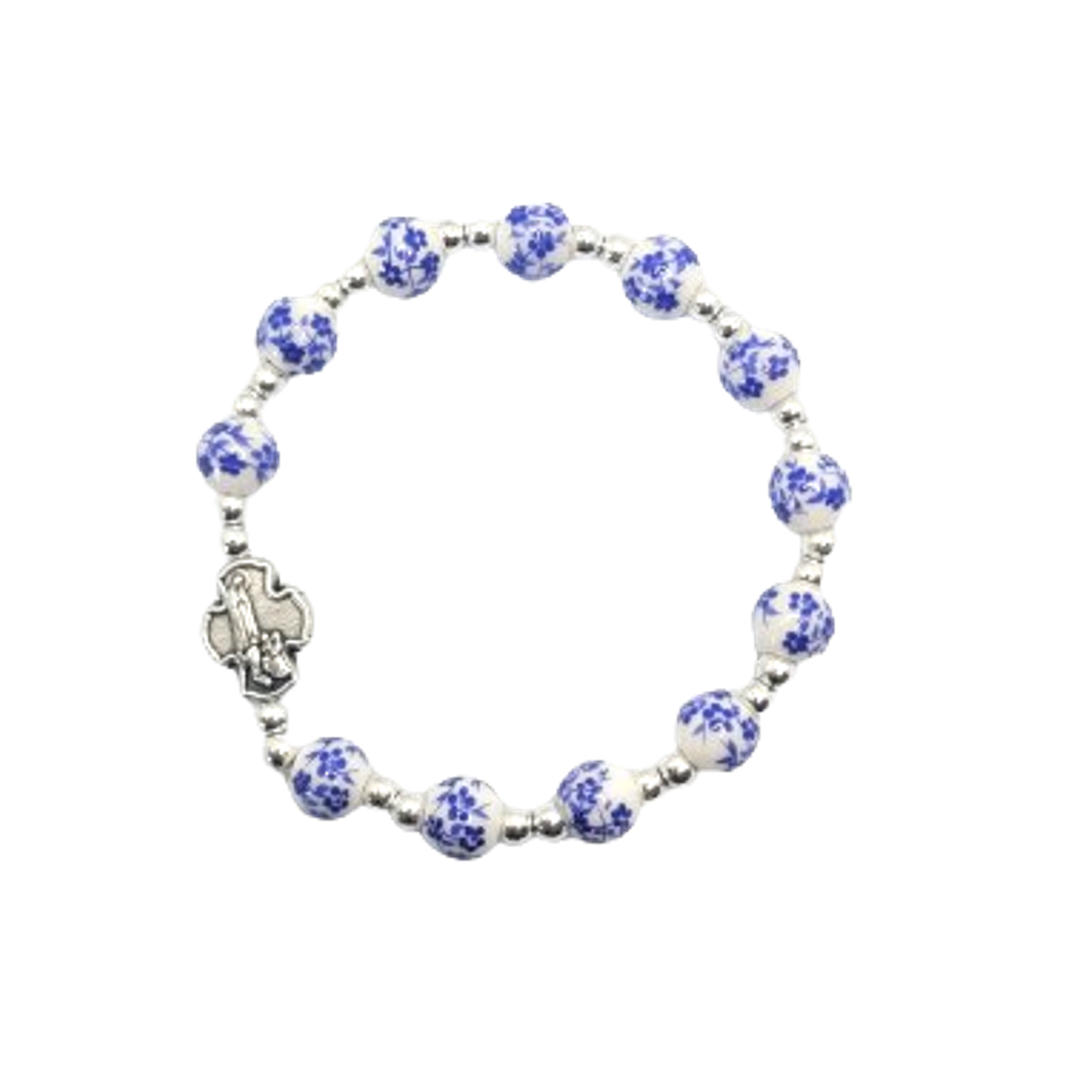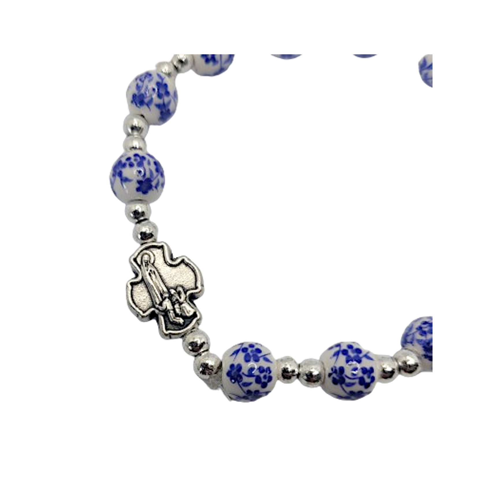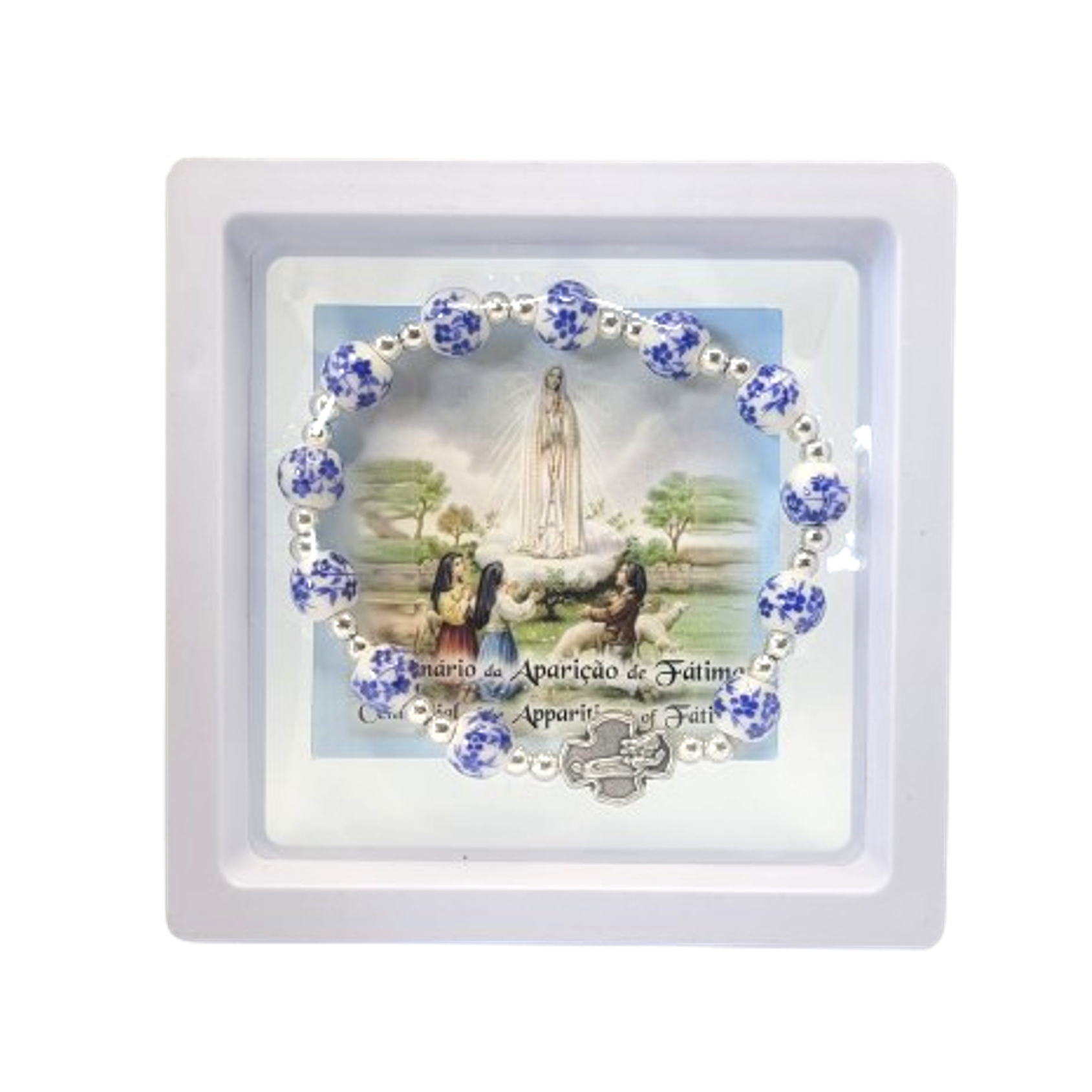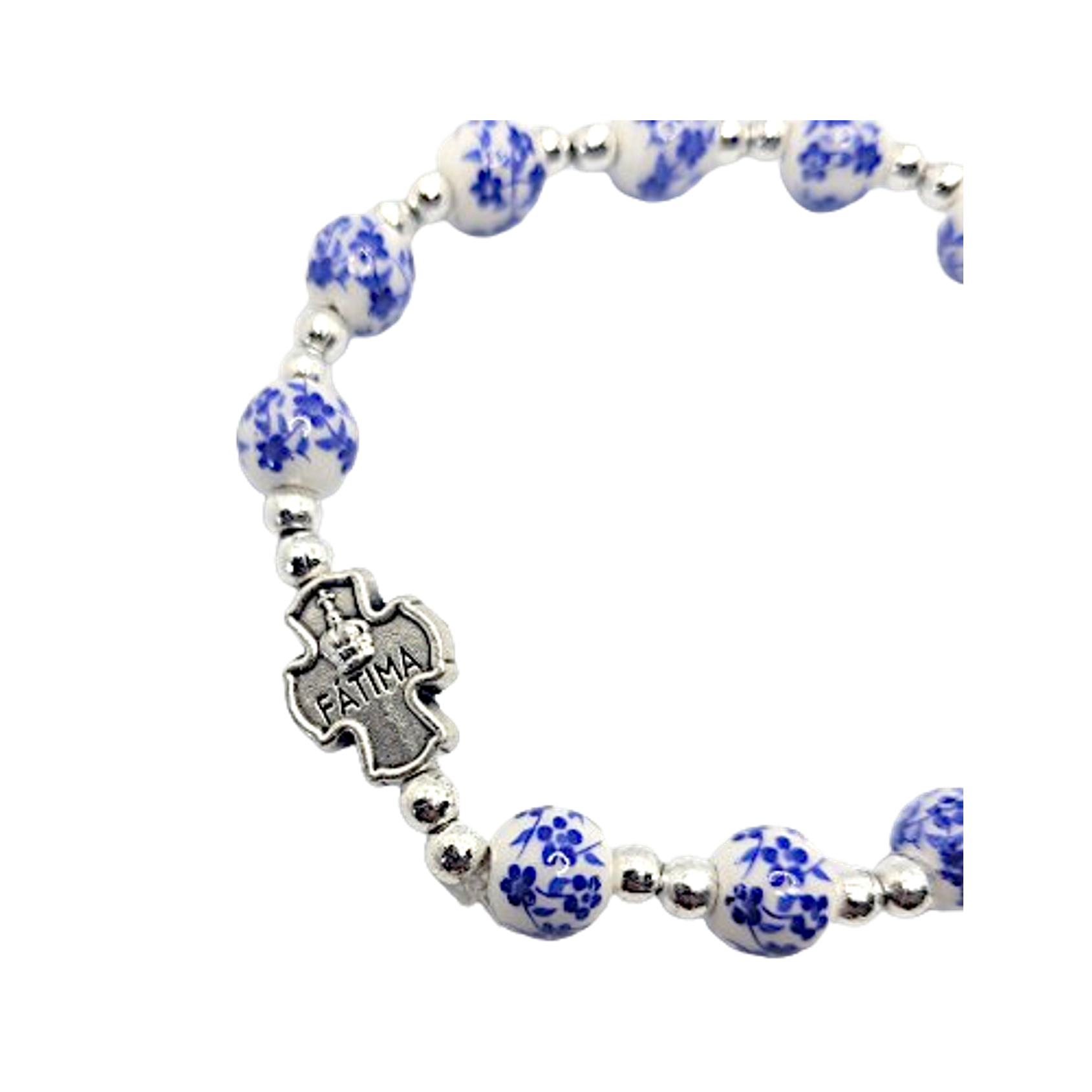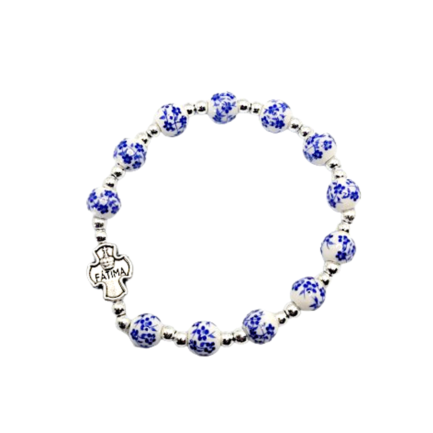 Embody grace and devotion with our Blue Porcelain Centennial Bracelet, painted with blue flowers and adorned with silver beads. Order now and embark on a journey of faith, guided by the timeless wisdom and love of Our Lady of Fatima.