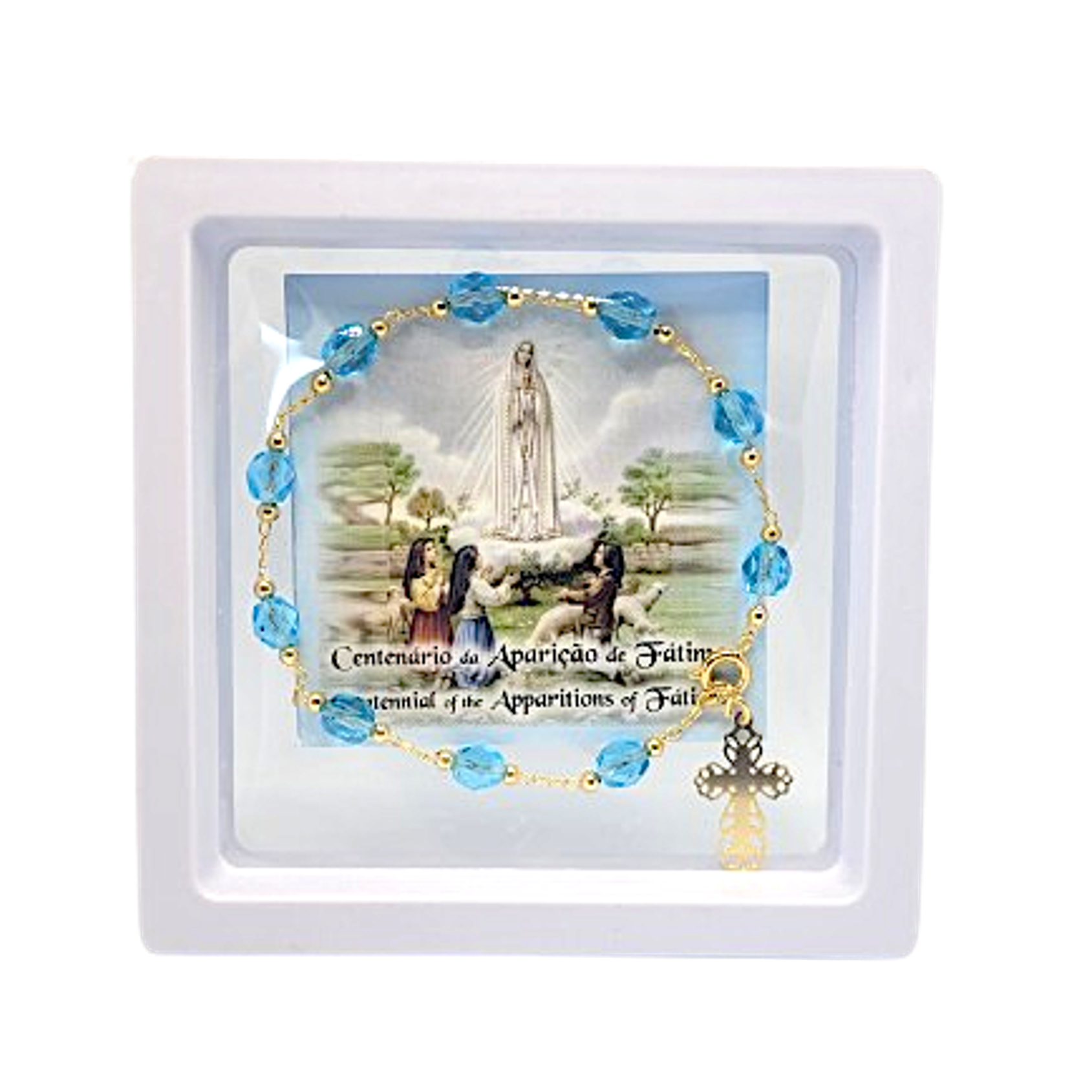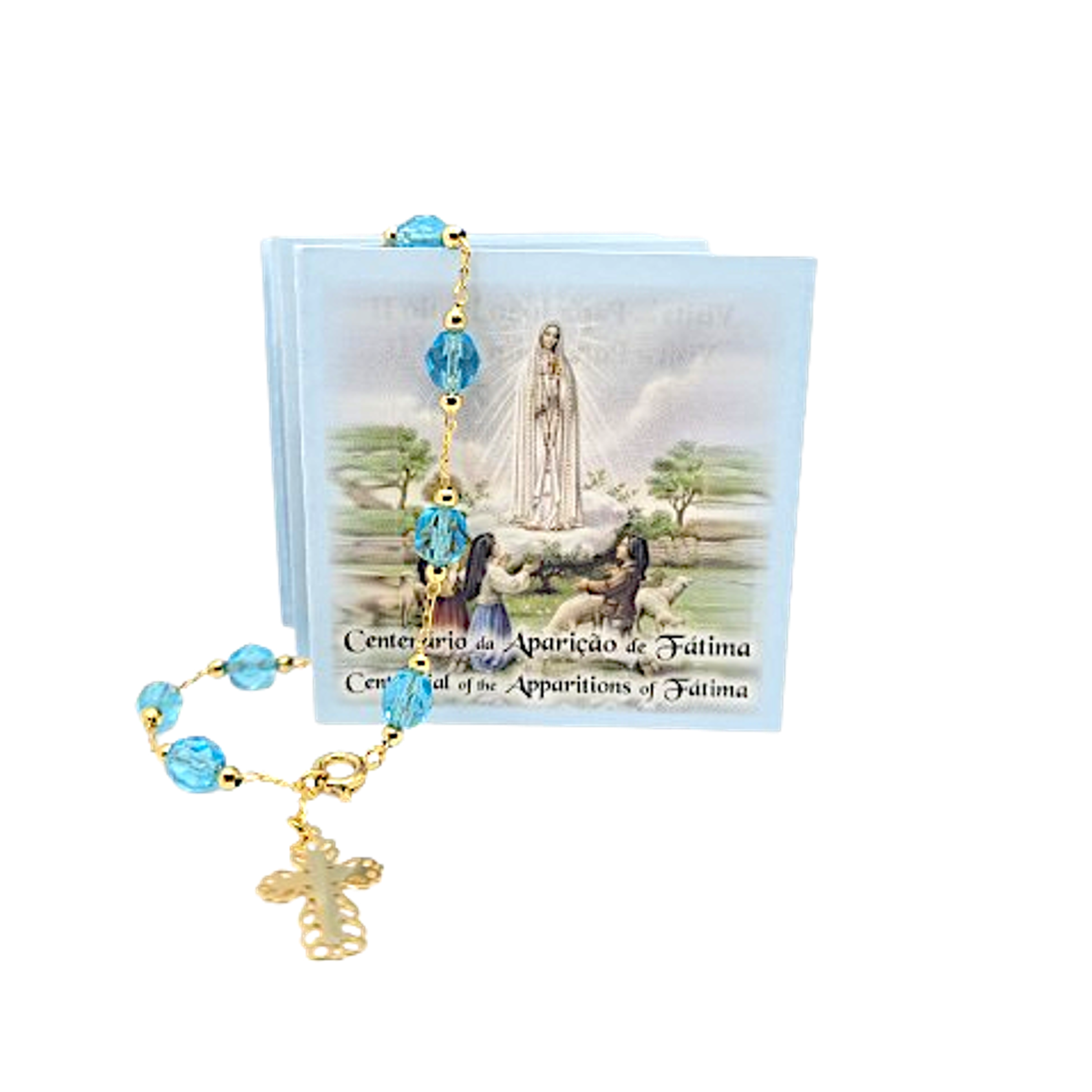 Order now our Golden & Blue Centennial Bracelet and add a touch of oceanic charm and luxury to your Our Lady of Fatima jewelry collection.